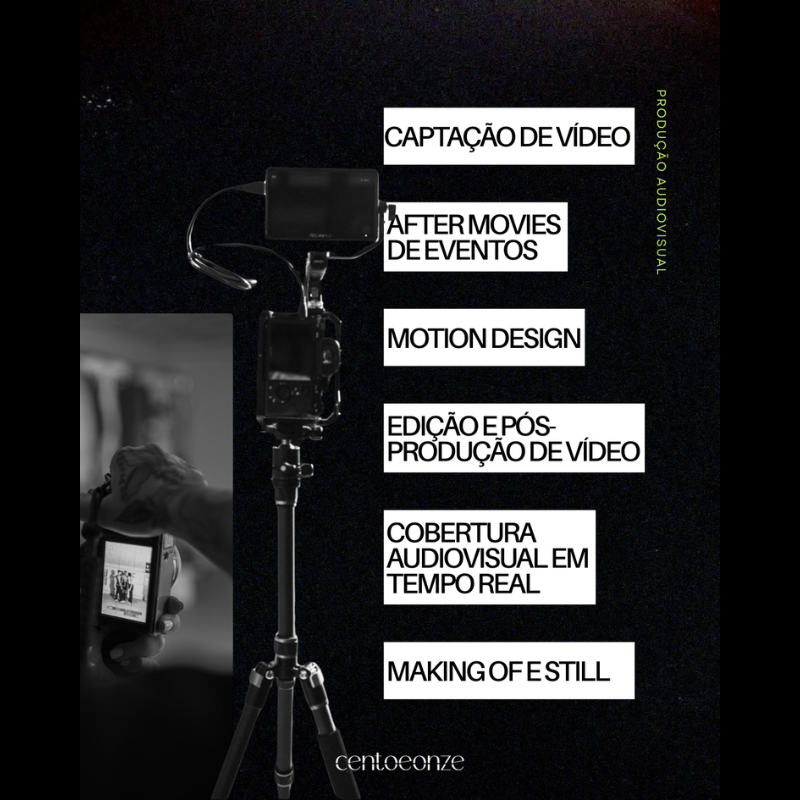 • Audiovisual: Fotografia, vídeos publicitários e institucionais, captação de eventos, clipes, storymaker, cobertura de eventos em tempo real, edição e motion design.